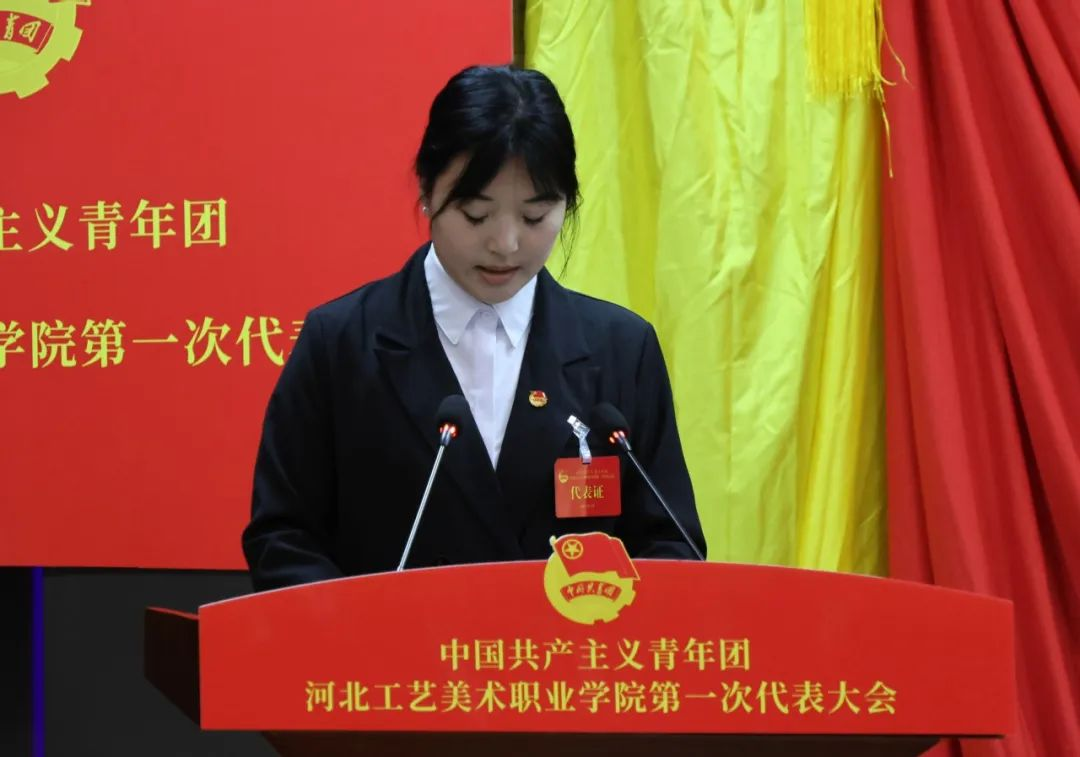 会议期间,代表们听取并审议通过了邓云同志代表共青团河北工艺美术职业学院委员会所作的《高举团旗跟党走 艺术赋能育新人--团结带领全校青年在新时代职业教育高质量发展中贡献青春力量》工作报告。