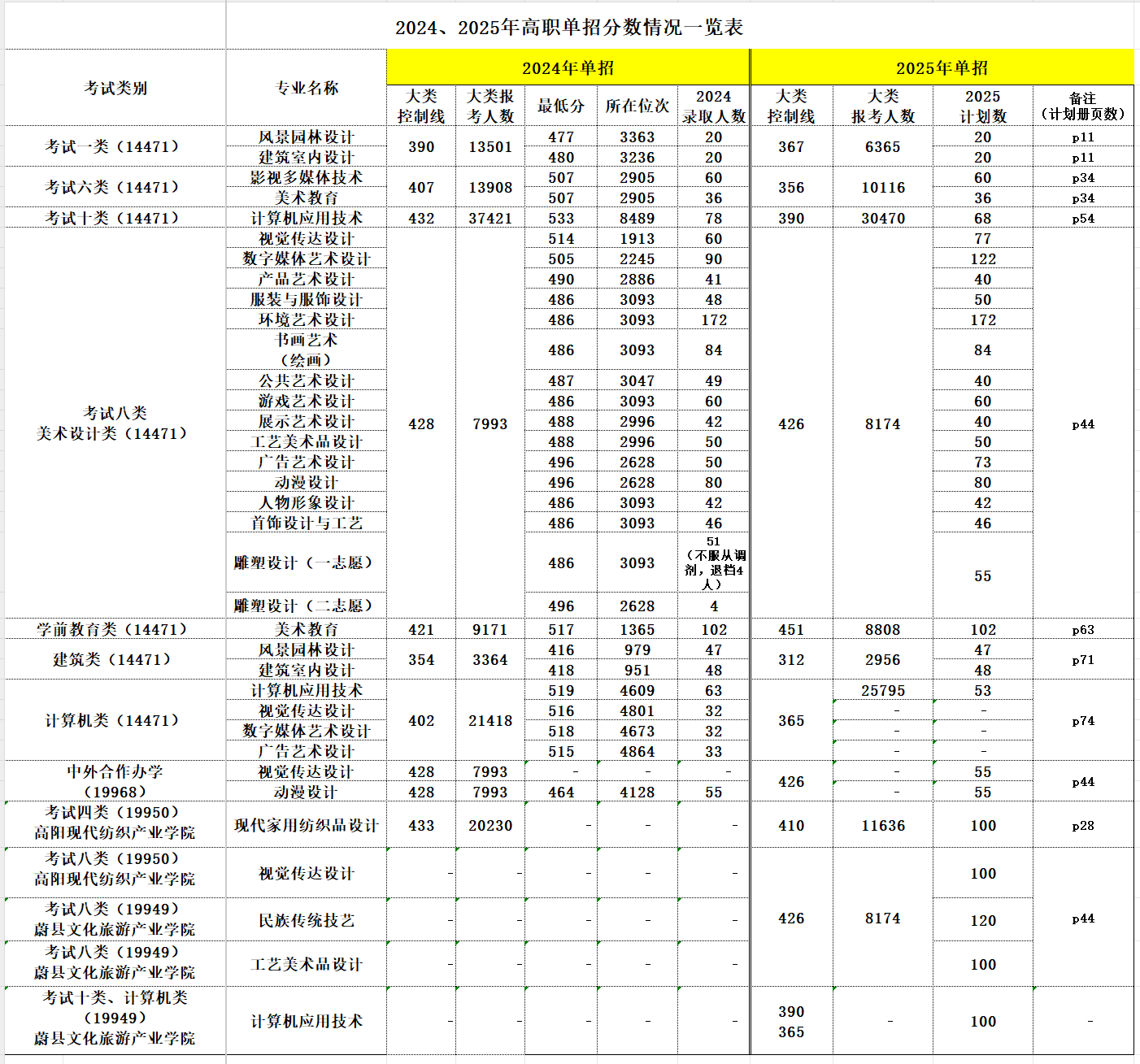 河北工艺美术职业学院2024、2025年高职单招分数情况一览表