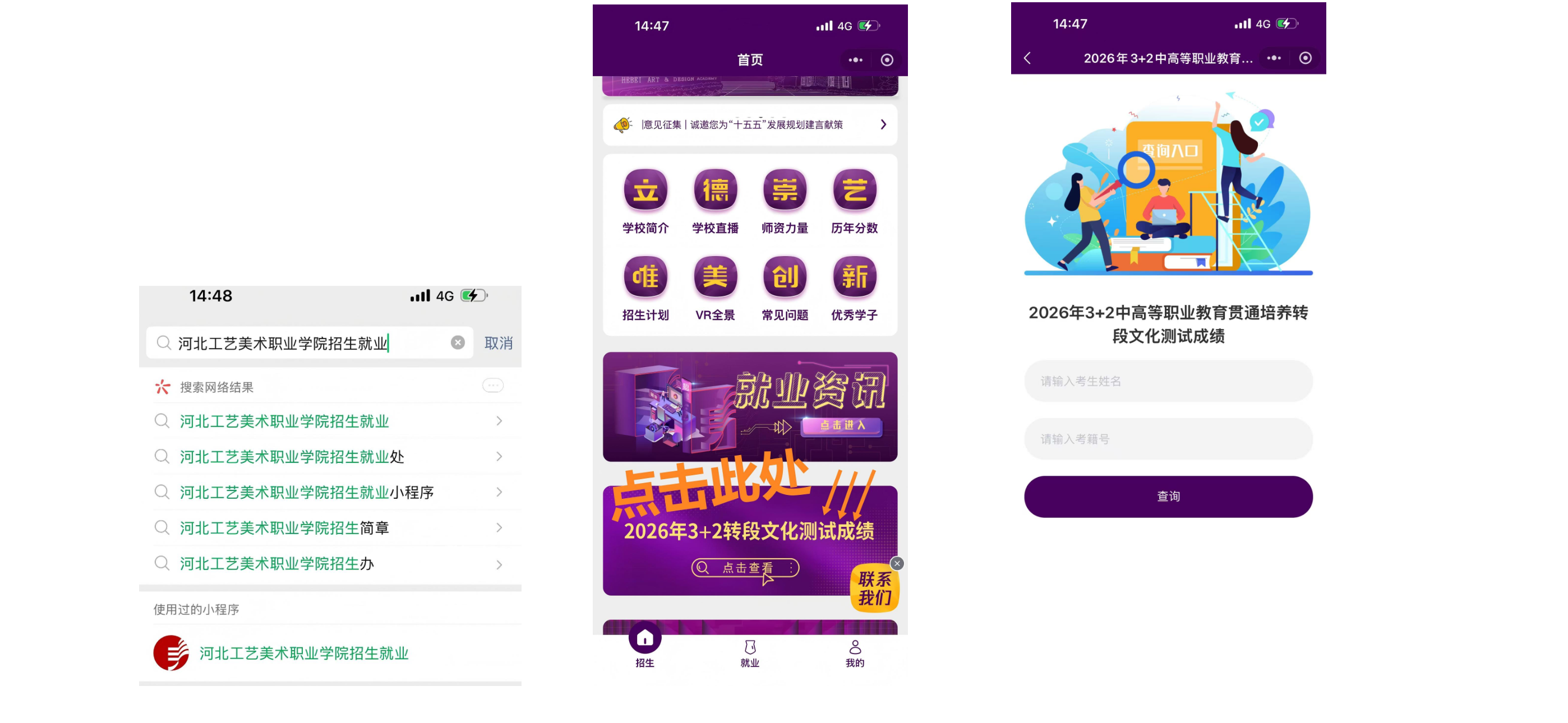 1. 打开微信,搜索并进入小程序“河北工艺美术职业学院招生就业”