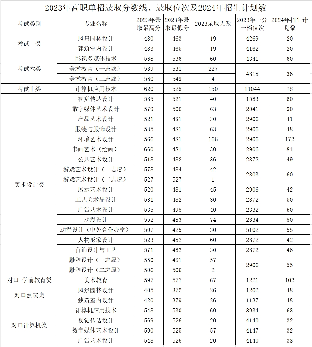 河北工艺美术职业学院2024年招生计划数及2023年分数、位次参考