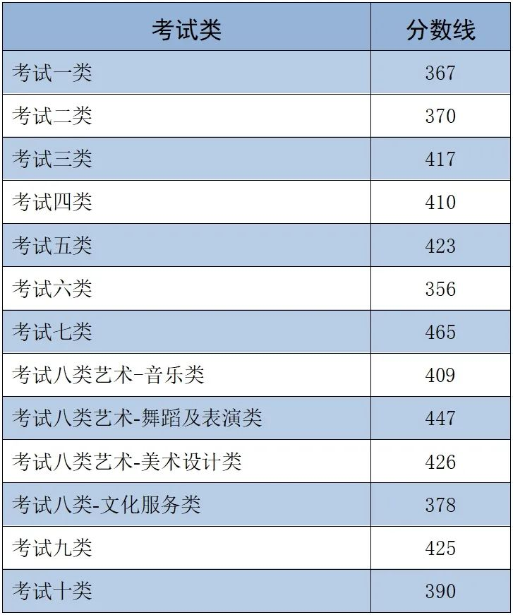 (一)面向普通高中毕业生各考试类录取控制分数线