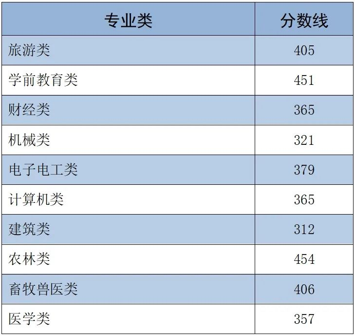 (二)面向中职毕业生各专业类录取控制分数线