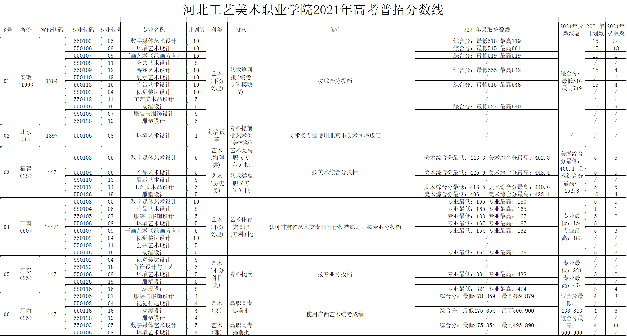 河北工艺美术职业学院往年分数线参考(查看高清大图请点右键另存为)
