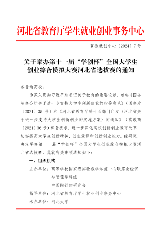关于举办十一届“学创杯”全国大学生创业综合模拟大赛河北省选拔赛的通知