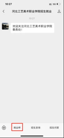 微信搜索“河北工艺美术职业学院招生就业”公众号,点击“就业桥”菜单栏跳转链接报名