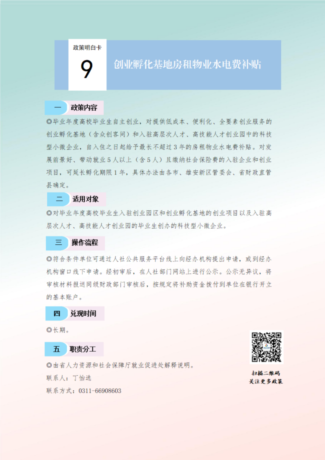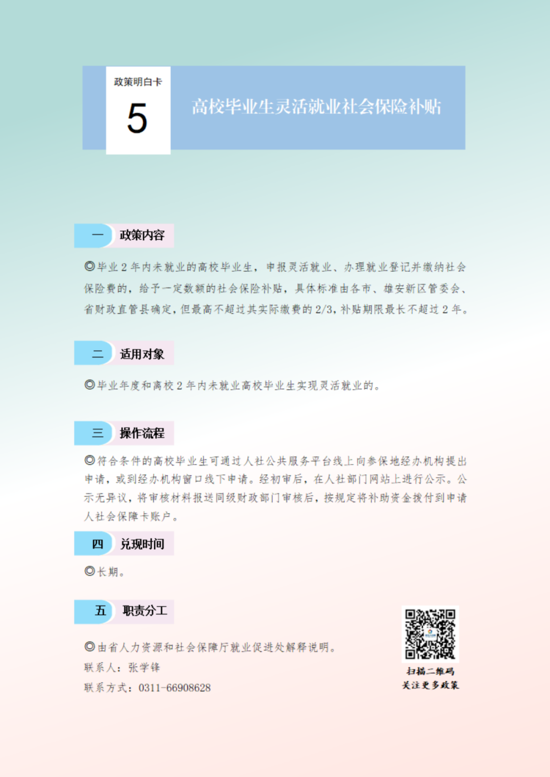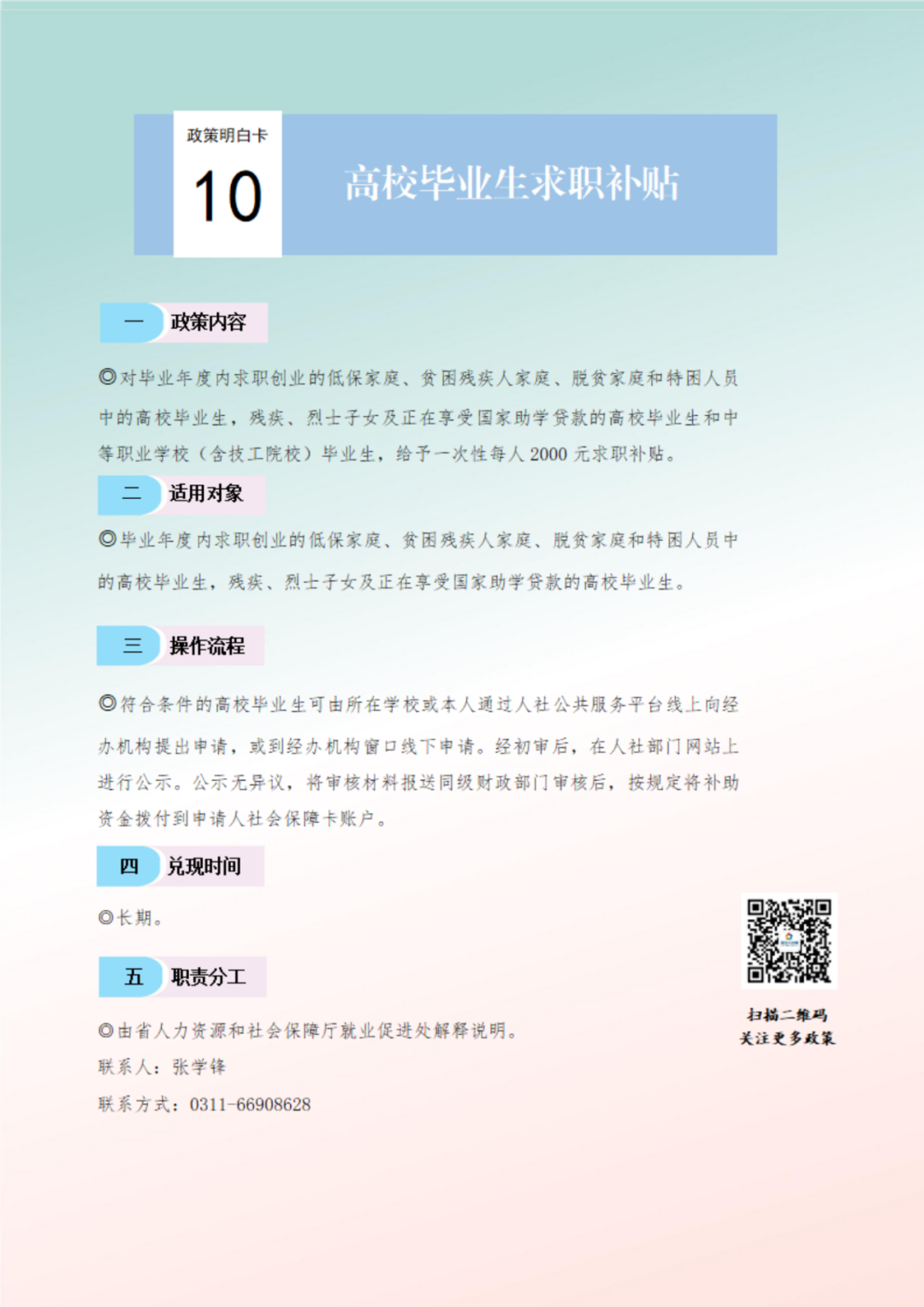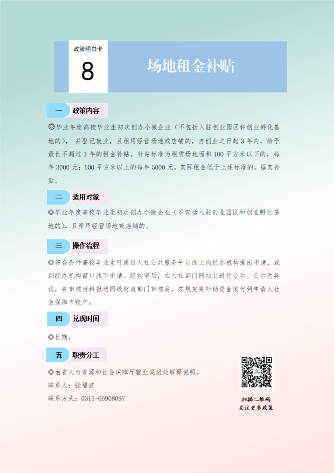 河北省《促进高校毕业生等青年就业创业政策明白卡》来了