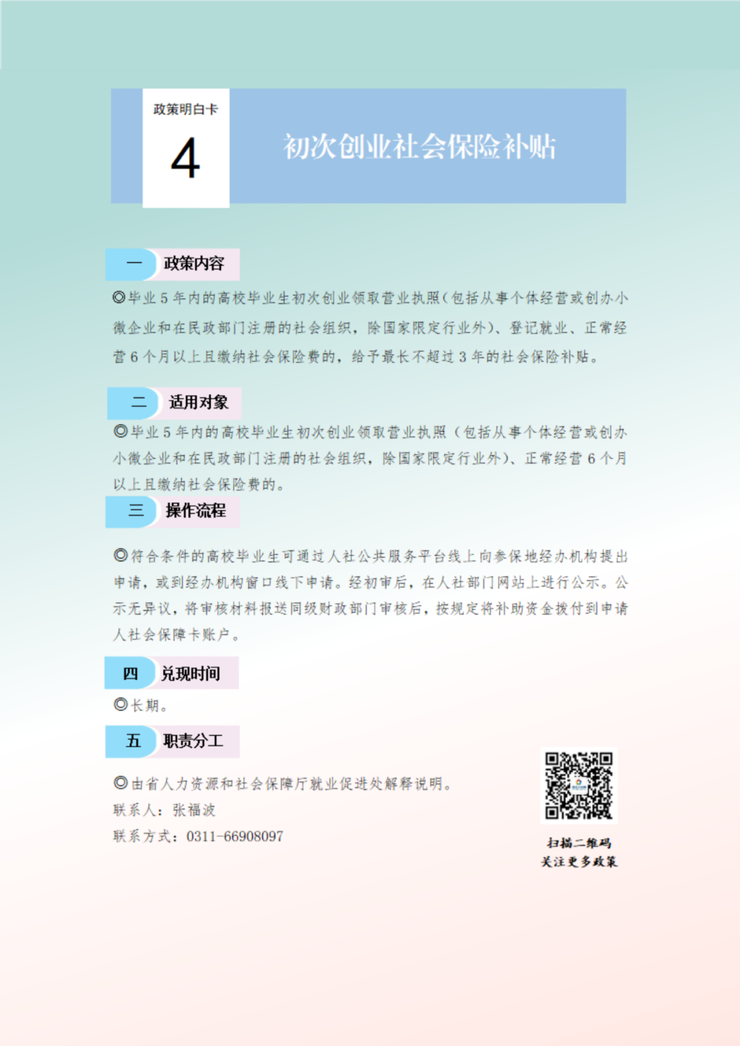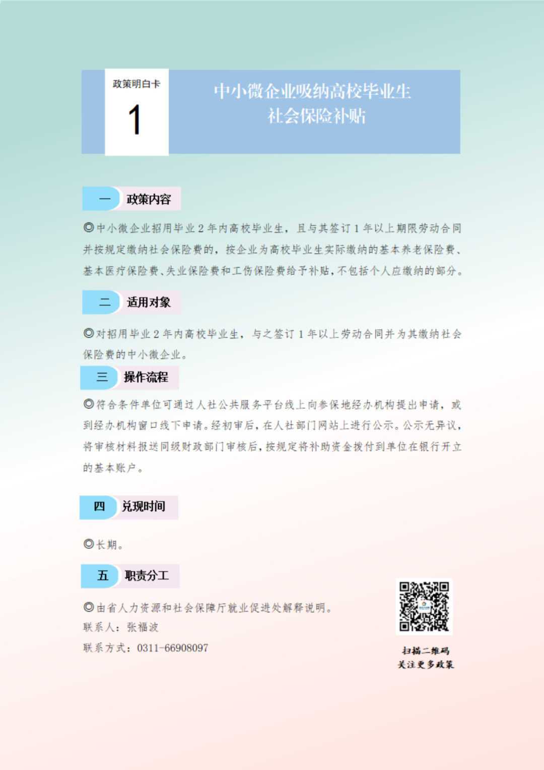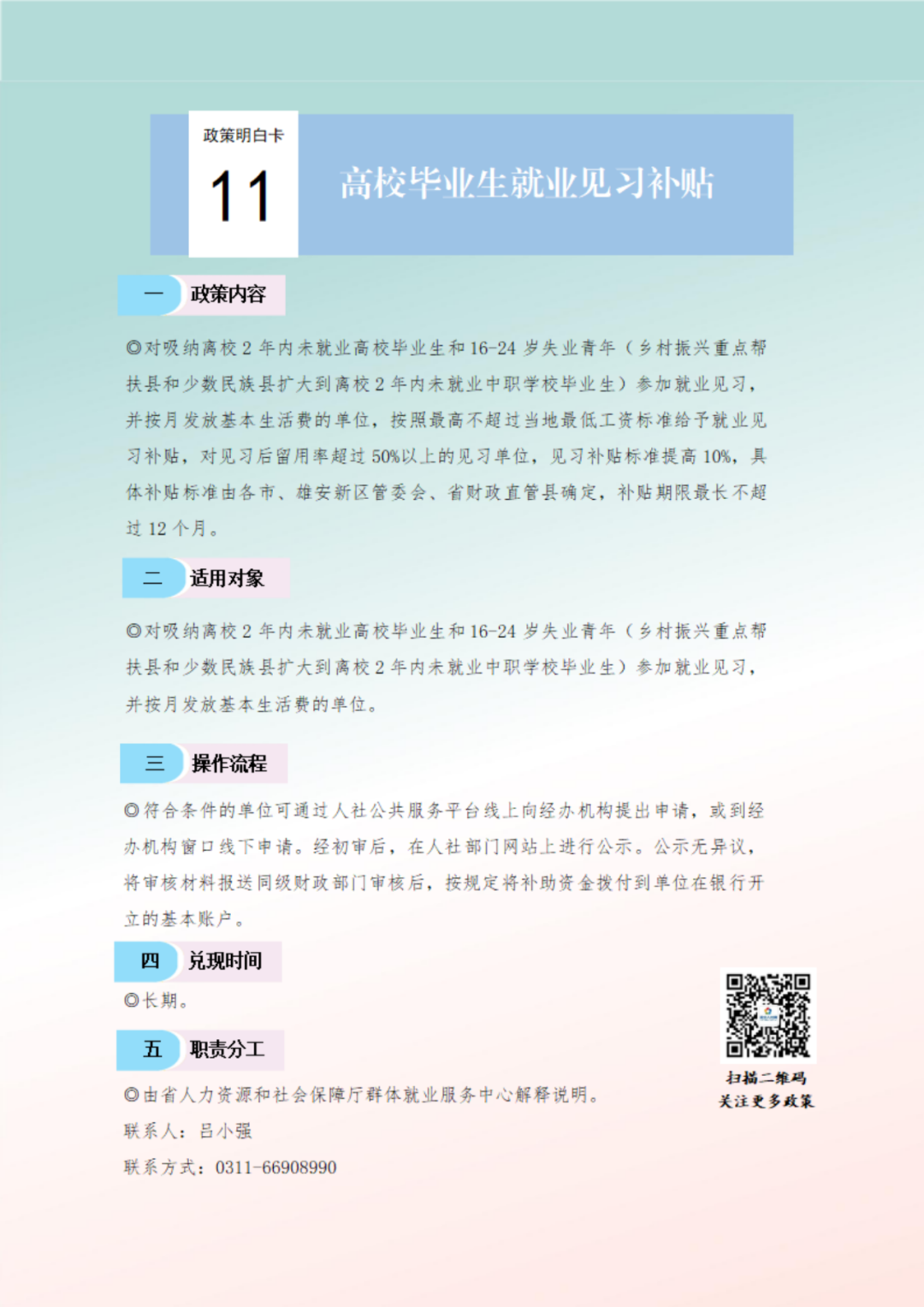 河北省《促进高校毕业生等青年就业创业政策明白卡》来了