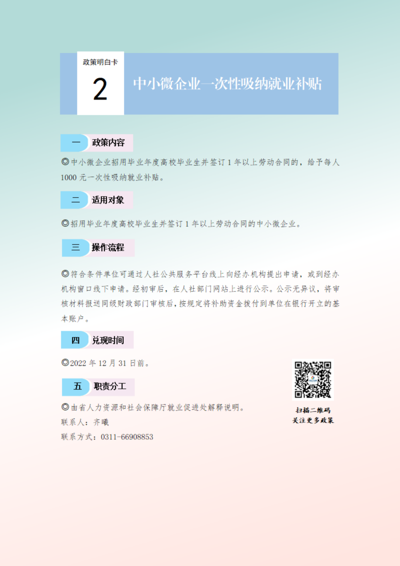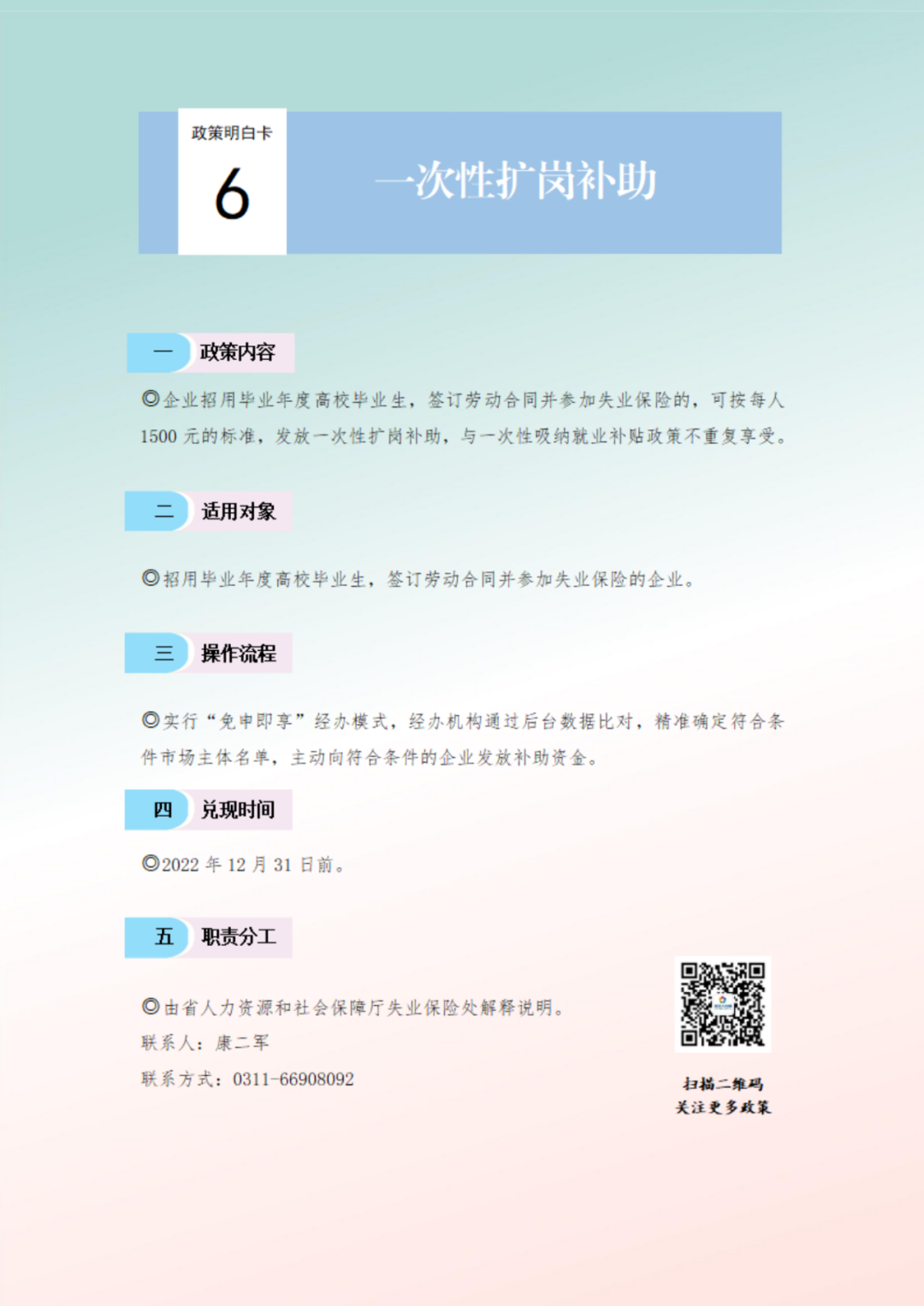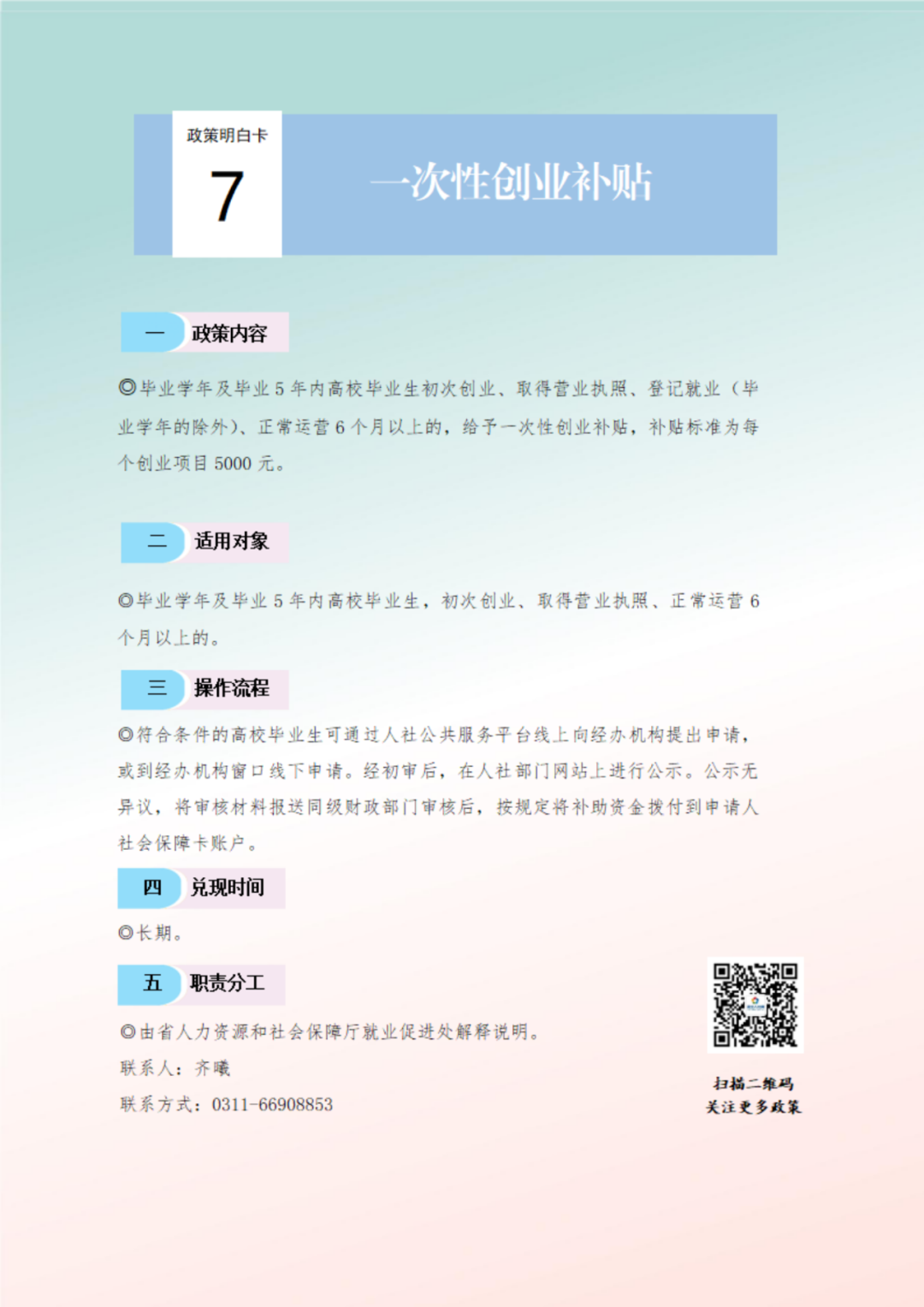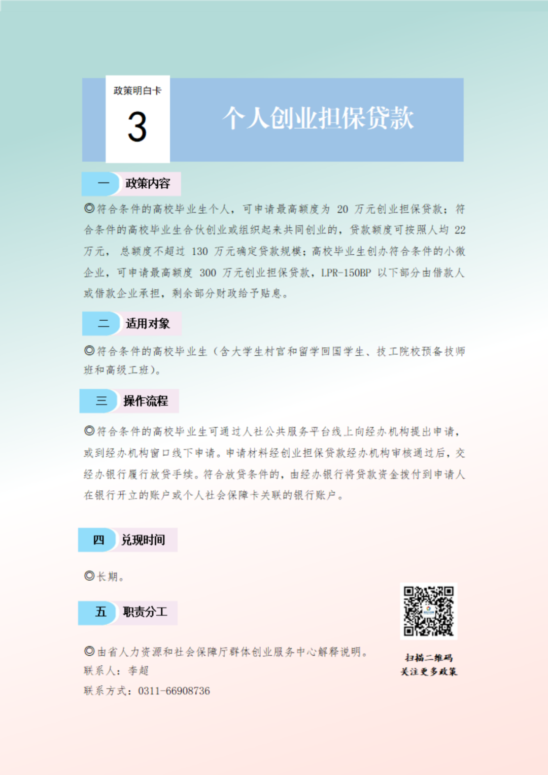 河北省《促进高校毕业生等青年就业创业政策明白卡》来了