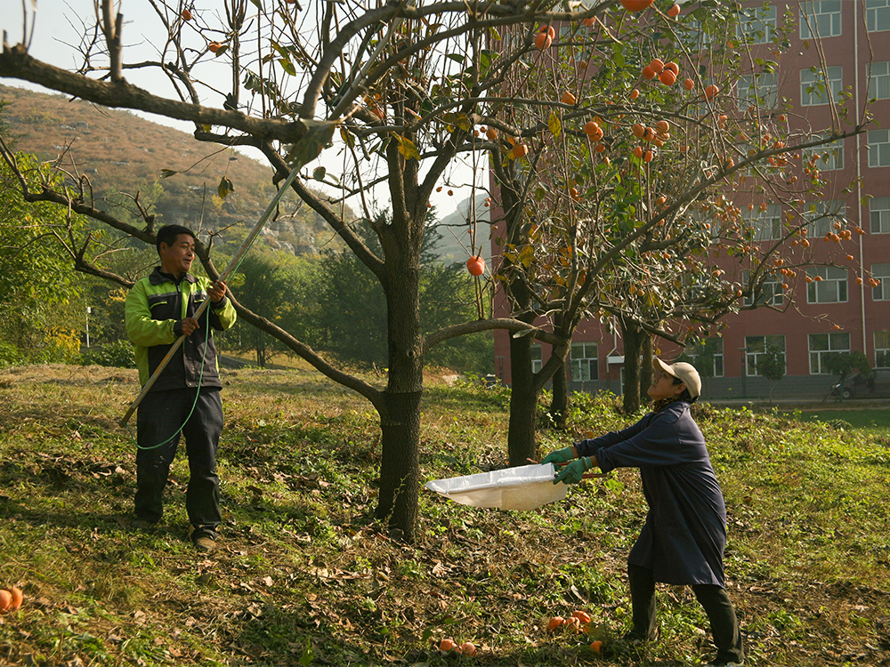 金灿灿的柿子乖乖落入兜中