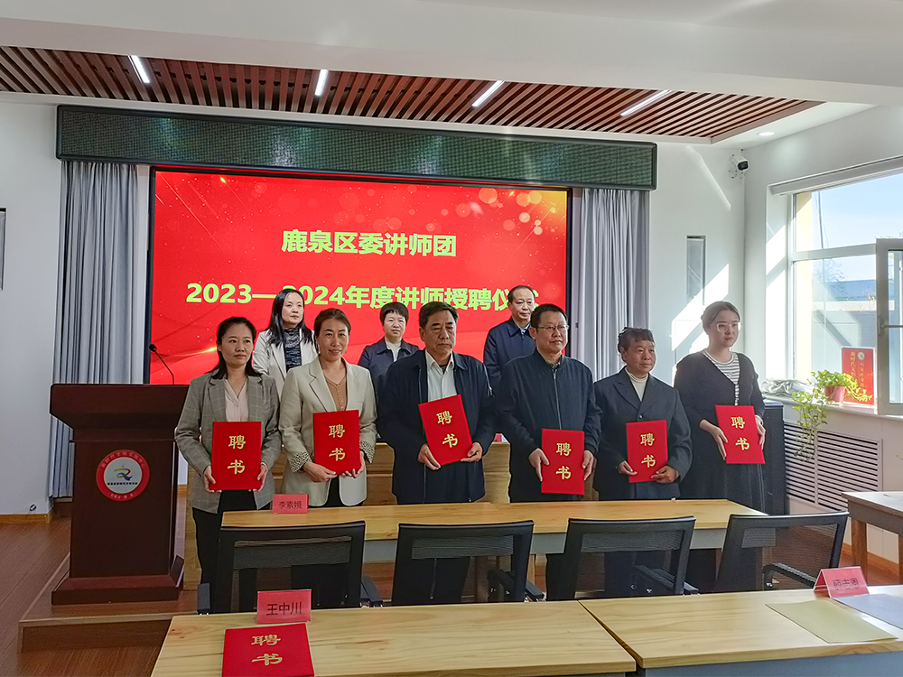 本次活动由鹿泉区委讲师团秘书长李春娥主持。区委讲师团副团长、区教育局长郝新峰宣读了《中共石家庄市鹿泉区委讲师团关于聘任2023-2024年度讲师的通知》,区委讲师团团长、宣传部常务副部长贾秀敏勉励各位讲师团成员要坚定政治立场,努力当好理论宣讲“宣传员”;结合自身优势,积极发挥理论宣讲“扩音器”作用;创新工作思路,深入探索理论宣讲“新格局”。
