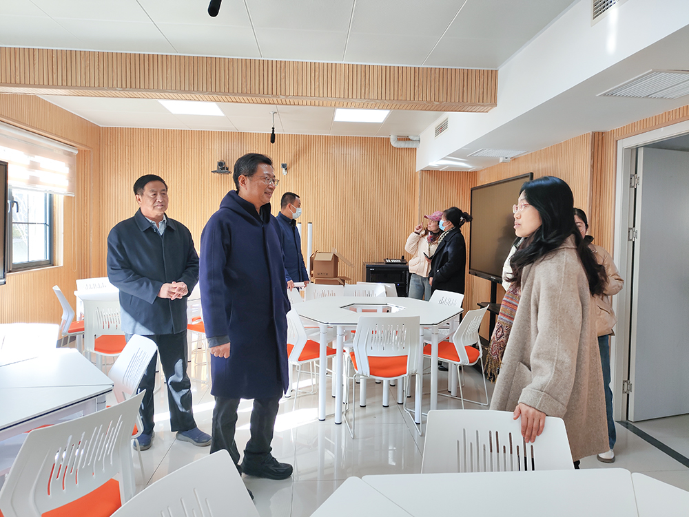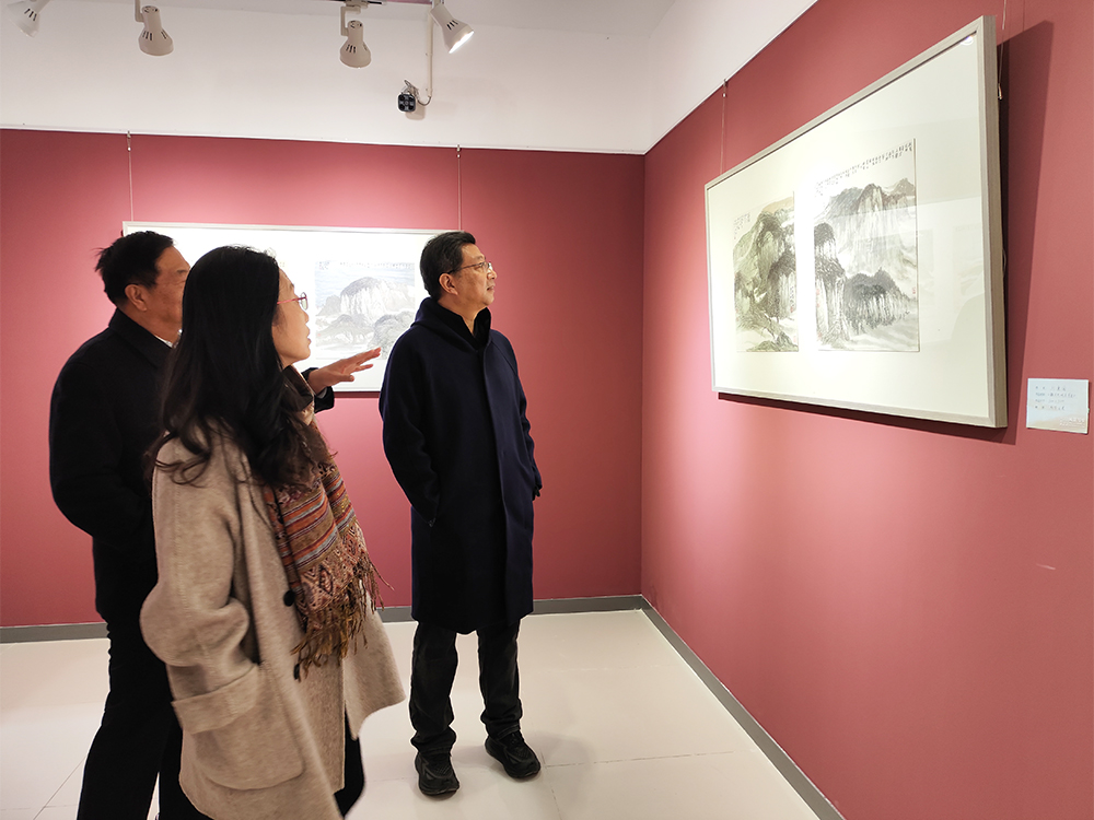 张广军先后来到艺术实践中心多功能报告厅、智慧教室、大师工坊,并参观了美术系师生写生作品展、视觉传达设计系结课作品展和数字艺术设计系结课作品展。