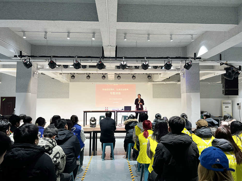 为深入学习贯彻党的二十大精神,贯彻落实习近平法治思想和习近平总书记关于宪法法治教育的重要指示精神,弘扬宪法精神,维护宪法权威,值此第十个国家宪法日、第六个宪法宣传周来临之际,艺术实践中心邀请河北省石家庄市八五普法讲师团成员、河北政法职业学院继续教育部主任张运鸿教授来我院开展国家宪法日主题宣讲。艺术实践中心全体师生近400人参加。