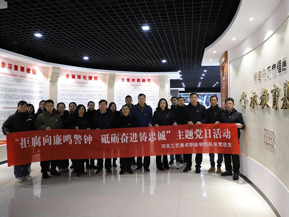 为进一步加强党风廉政建设,筑牢拒腐防变思想防线,引导党员干部知敬畏、存戒惧、守底线。根据学院党委、纪委工作安排,12月14日,学院机关党总支牵头,组织竞秀校区行政党总支、美术系党总支、时尚工艺系党总支、思想政治理论课教学部党总支,满城校区视觉传达设计系党总支、环境艺术设计系党总支、数字艺术设计系党总支党员干部赴保定市反腐倡廉警示教育基地开展“拒腐向廉鸣警钟 砥砺奋进铸忠诚”主题党日活动。学院党委书记殷永桥、党委副书记赵云耕、纪委书记王立新、党委委员副院长杨庆华以普通党员身份参加活动。