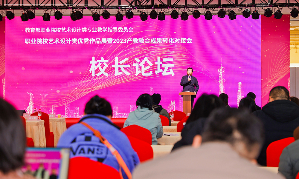 在下午的职教论坛活动中,我院院长、博士生导师张广军教授第一位出场在“校长论坛”上进行了分享,介绍了学院概况及发展历史,重点阐释了我院作为职业教育院校的独特优势,通过前瞻性和实力创作,将传统工艺美术与现代艺术深度结合,使工艺美术的生命力得到延续。并且张广军院长就我院中外合作办学、提升教育质量的探索与实践与来宾进行了分享。最后张广军院长呼吁各兄弟院校之间要加强交流与合作,互相学习借鉴,共同进步,同时加强与企业之间的合作,实现和时代发展紧密结合、和国际接轨,服务于国家重大战略和地方经济的发展。