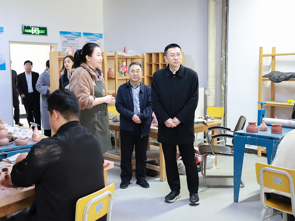 殷永桥对张春生一行表示热烈欢迎,对河北省教育厅给予我校的关心与支持表示衷心感谢。张春生一行参观了我校的教授作品展、时尚工艺文创作品展,实地考察了各系部教学工坊,深入了解我校现代人才培养、教学实践与产教融合等方面的情况。