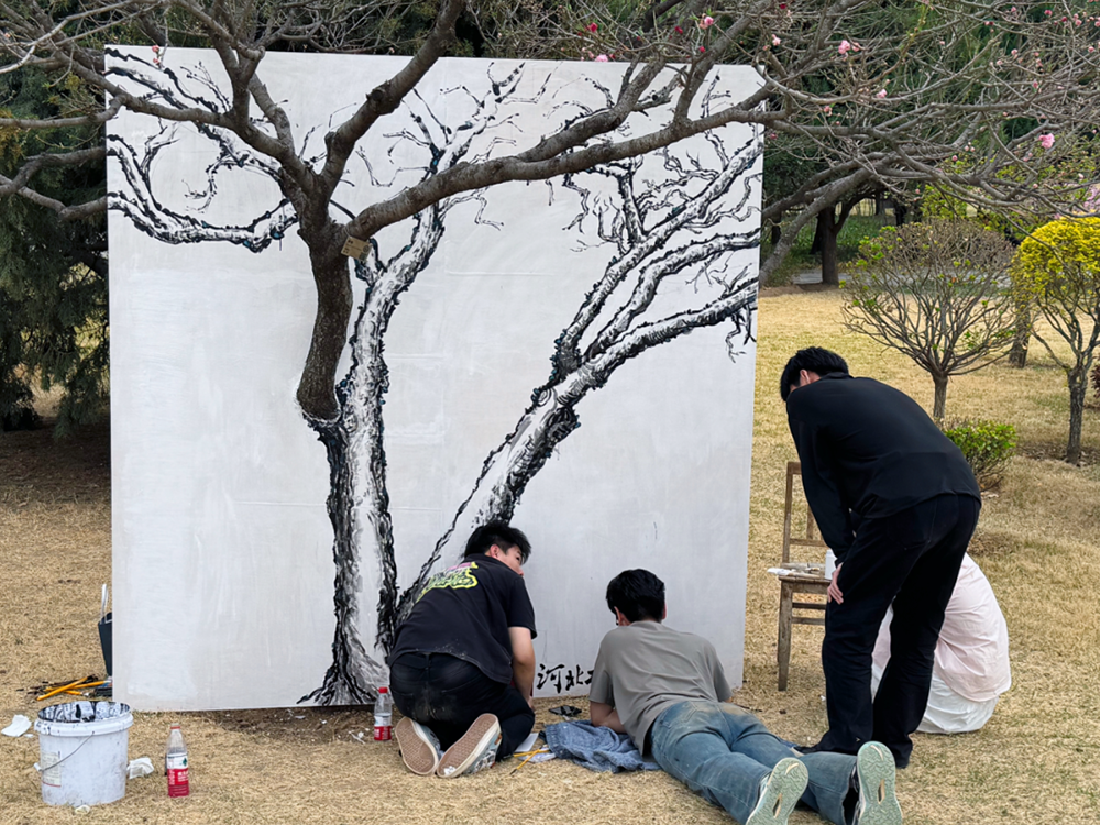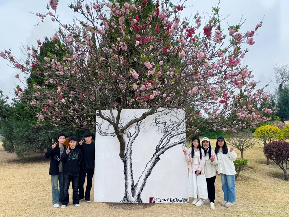 近日,美术系师生志愿者前往保定植物园,开展了一次特别的创作活动,将园内一颗普通的碧桃树,通过绘画创作将其变成引人入胜的网红打卡点。
