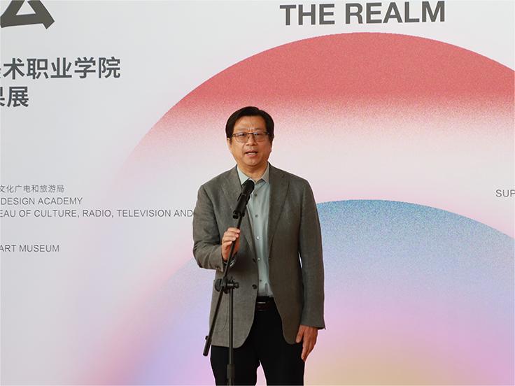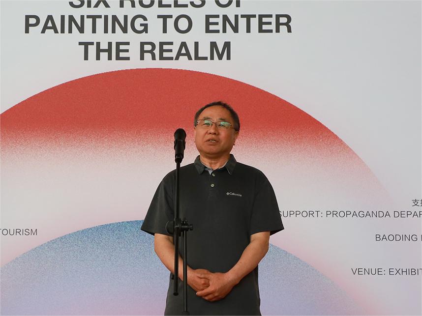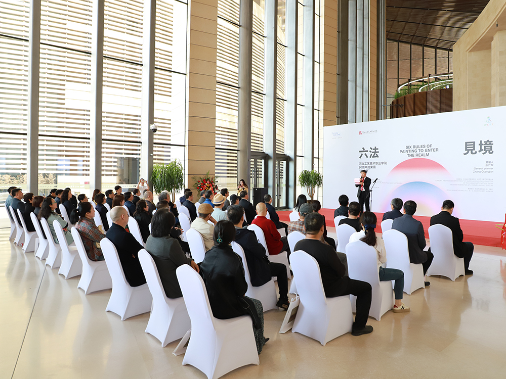张广军向给予学校展览支持的市领导、各有关部门、兄弟院校表示了感谢,他谈到此次展览作品是我校教师在梳理和汲取了几代工艺美院人艺术成就基础上的体现,彰显了我校教师身处时代洪流之中、在责任与艺术追求之间的反复琢磨,将绘画艺术与教学精神内核相融合的独有创新。同时张广军谈到,作为河北省内唯一一所工艺美术类院校,我校始终追求卓越,追求高质量发展,“六法见境”在北京展览期间,受到杨飞云、王春辰等国内著名专家学者的高度赞扬和肯定。在保定举办此次展览,不仅仅只是展现“六法”,而是通过诸多“法”的融合所展现出来的意“境”,以“六法”融“诸法”,以形见境于心。