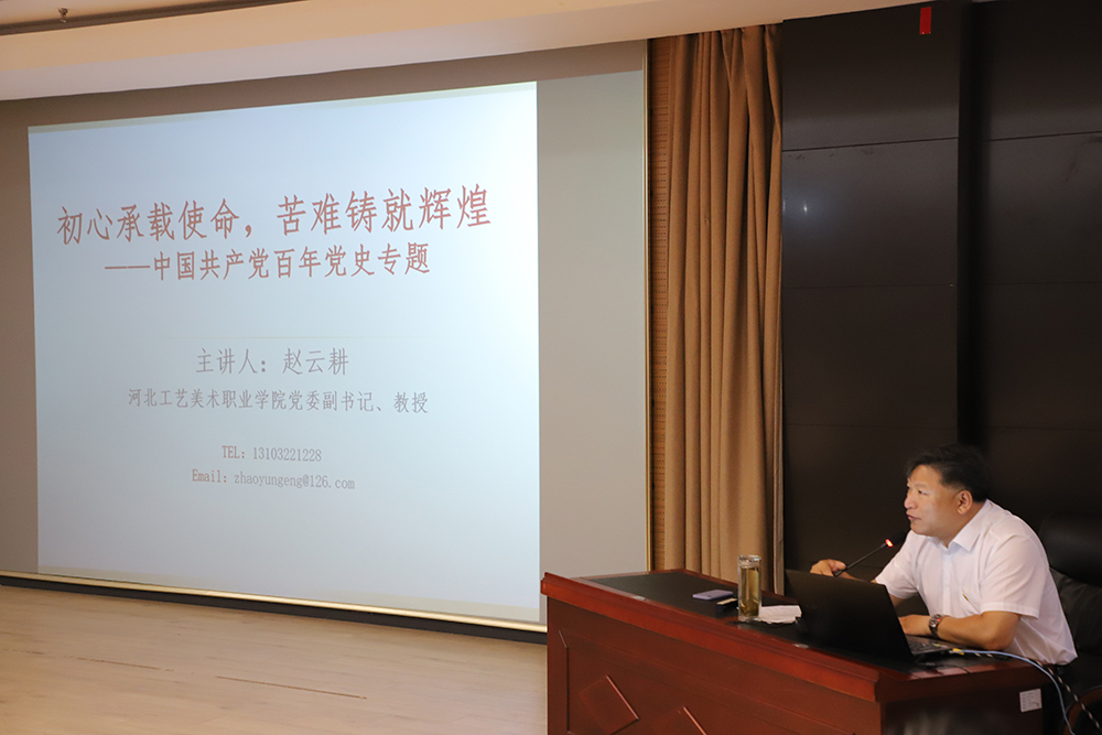 赵云耕为全体党员、积极分子讲授“初心承载使命,苦难铸就辉煌”——中国共产党百年党史专题党课,主要围绕中国革命、建设和改革的历史进程,回顾了中国共产党这一时期的重大历史性事件以及取得的巨大成就。赵云耕指出,只有在中国共产党的领导下,坚持走建设中国特色社会主义道路,才能实现中华民族伟大复兴。作为一名共产党员,更应该牢固树立正确的世界观、人生观、价值观,勤奋、努力地学习,发挥先锋模范作用,不断加强党性锻炼,保持共产党员本色,不忘初心、牢记使命。
