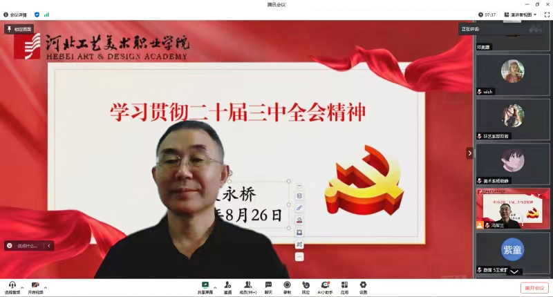 为深入推动党的二十届三中全会精神在我校落地生根,扎实引导广大青年学生深入理解、全面把握全会精神。8月26日下午,我校党委书记殷永桥于线上为师生开展党的二十届三中全会精神宣讲,学校各系师生代表共计400余人参加,党委宣传部部长王晓非主持会议。