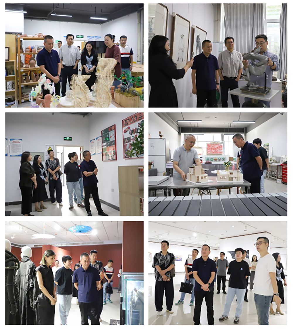 张广军代表学校对廖科一行的到来表示欢迎,陪同参观了我校美术作品展、时尚工艺文创作品展,实地考察了各系部教学工坊。