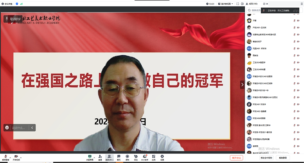 殷永桥围绕“回顾假期,捕捉奥运之光”“读懂工美,矢志艺术报国”“规划未来,书写青春华章”三方面展开论述。带领同学们回顾了暑假期间第33届夏季奥林匹克运动会中我国奥运健儿的高光时刻,介绍了我校的基本概括、校训校风教风以及各系的教师、学生风采,用习近平总书记《培养德智体美劳全面发展的社会主义建设者和接班人》的重要论述激励全体新生并提出殷切期望。