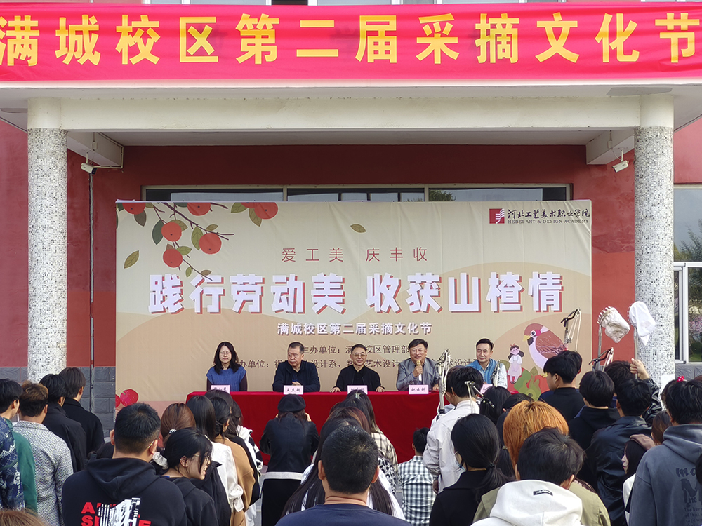 10月14日,河北工艺美术职业学院在满城校区举办了以“践行劳动美,收获山楂情”为主题的第二届采摘文化节活动。学校党委书记殷永桥、党委副书记赵云耕、纪委书记王立新、满城各系师生代表参加活动。