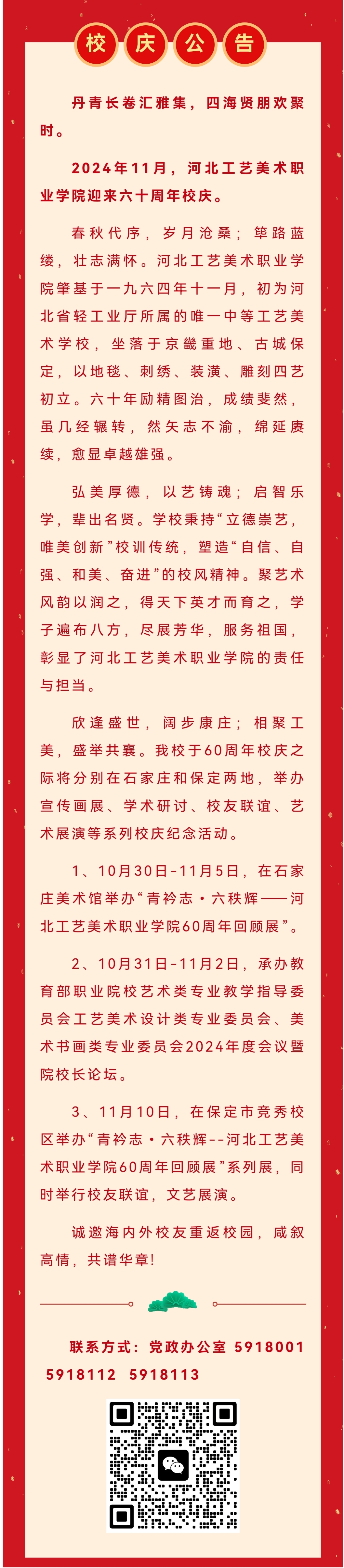 河北工艺美术职业学院60周年校庆公告(第一号)