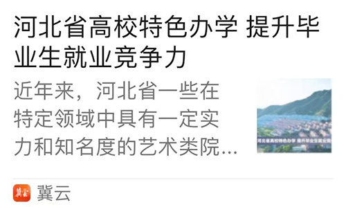 10月22日,央视频以《河北省高校特色办学 提升毕业生就业竞争力》为题,报道我校建校60周年在特色办学以及艺术设计领域取得的成绩。新华网、长城网、河北新闻网、冀云客户端、纵览新闻客户端等多家国家级、省级媒体先后转发。