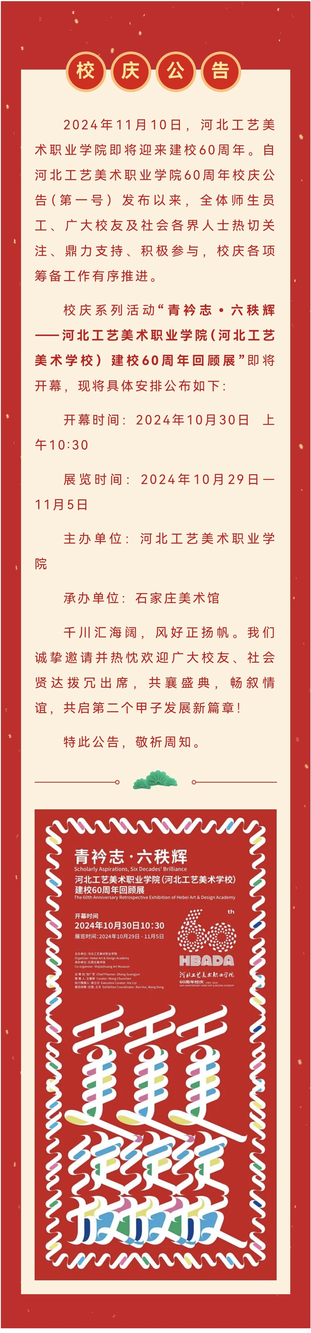 河北工艺美术职业学院 60周年校庆公告(第二号)