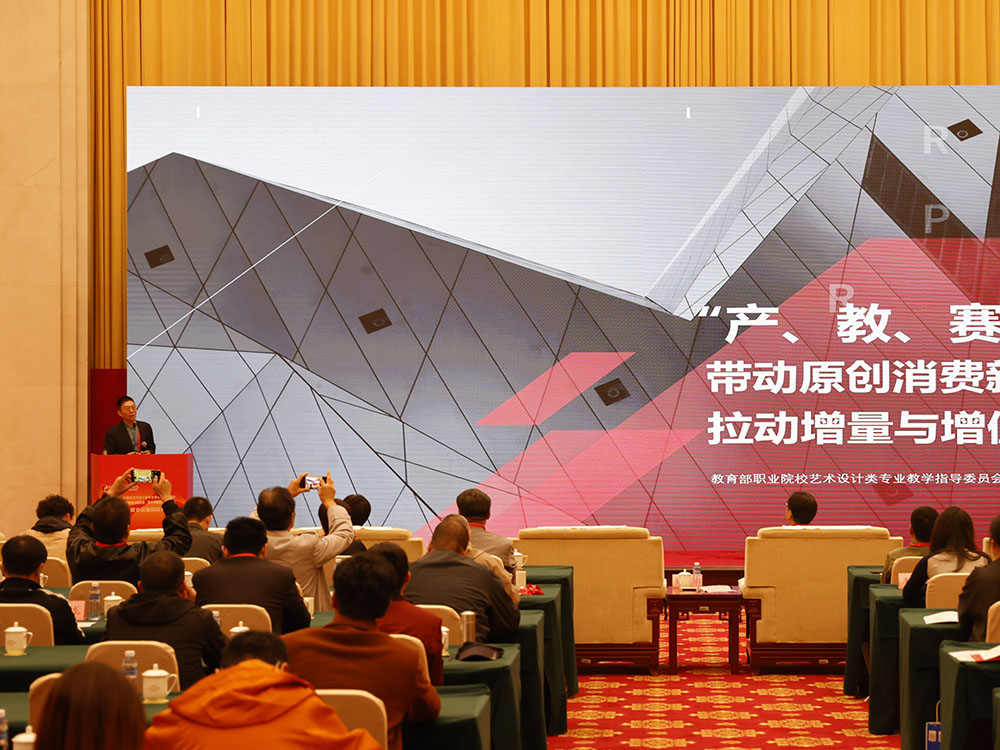 教育部职业院校艺术设计类专业教学指导委员会秘书长张来源以《“产、教、赛”结合:带动原创消费新业态,拉动增量与增值》为题进行分享,从再试问、再思考、再分析、再反省、再设计、再结合六个方面对“产、教、赛”结合提出了独到的见解,他指出,相关竞赛项目内容应结合企业产品、结合市场商品、结合客户新需求、结合新技术发展,发挥“政、校、企、行〞多方联动效益,校企结合、校地结合,使参赛作品重点聚焦产品的增值与增量上,带动原创消费新业态。