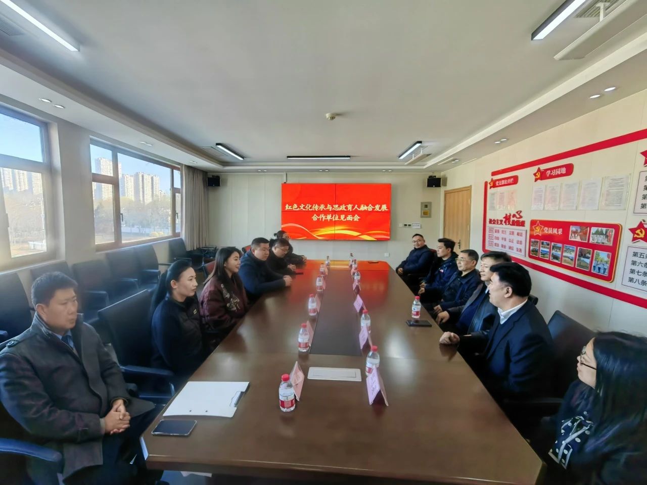 在展演活动开始前,进行了红色文化传承与思政育人融合发展合作单位见面会,由党委副书记赵云耕主持。会后,进行展演活动,校党委书记殷永桥致辞。