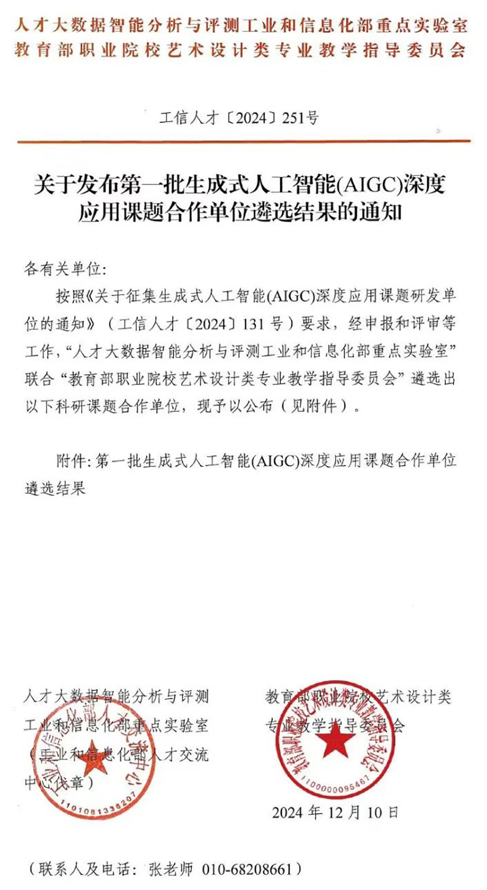 为深入贯彻党的二十大和中央人才工作会议精神,运用新一代信息技术助力工业和信息化领域人才治理体系和治理能力现代化,有效支撑我国世界重要人才中心和创新高地建设,“人才大数据智能分析与评测工业和信息化部重点实验室”(以下简称重点实验室)联合“教育部职业院校艺术设计类专业教学指导委员会”共同设立“生成式人工智能(AIGC)深度应用科研课题”。