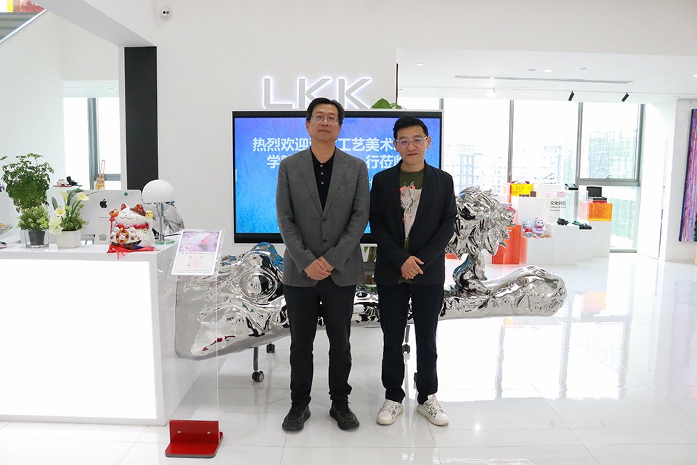 798艺术区左右艺术品超市作为国内领先的艺术品综合服务平台,以“艺术生活化”为理念,汇聚了全球艺术家作品,打造了集展览、交易、教育于一体的创新业态。考察团参观了其运营模式、技术应用与市场转化路径,围绕“艺术+科技”跨界人才培养、文创IP开发、学生创新创业孵化等议题展开探讨,并就共建“产学研一体化校企共育实践基地”、联合组建“校企创新设计中心”共同开展创新产品设计与研发、推动产品商业化等达成合作意向。