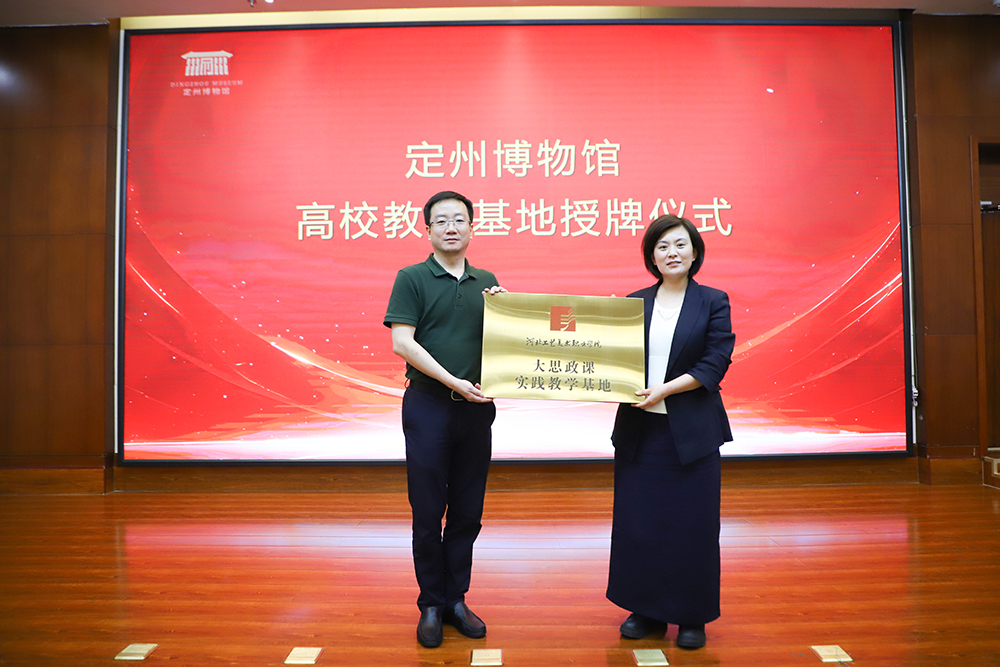 为深入贯彻落实习近平总书记关于“大思政课”的重要指示批示精神,把思政教育“小课堂”和社会“大课堂”有效融合起来,5月14日,我校与定州博物馆举行了“大思政课”实践教学基地签约挂牌仪式。我校马克思主义教学部主任王晓非,定州博物馆党支部书记、副馆长汪蕾,定州博物馆相关负责人以及我校师生代表参加此次活动。