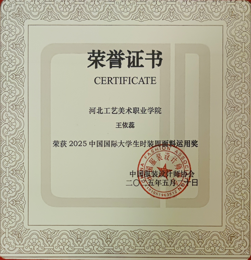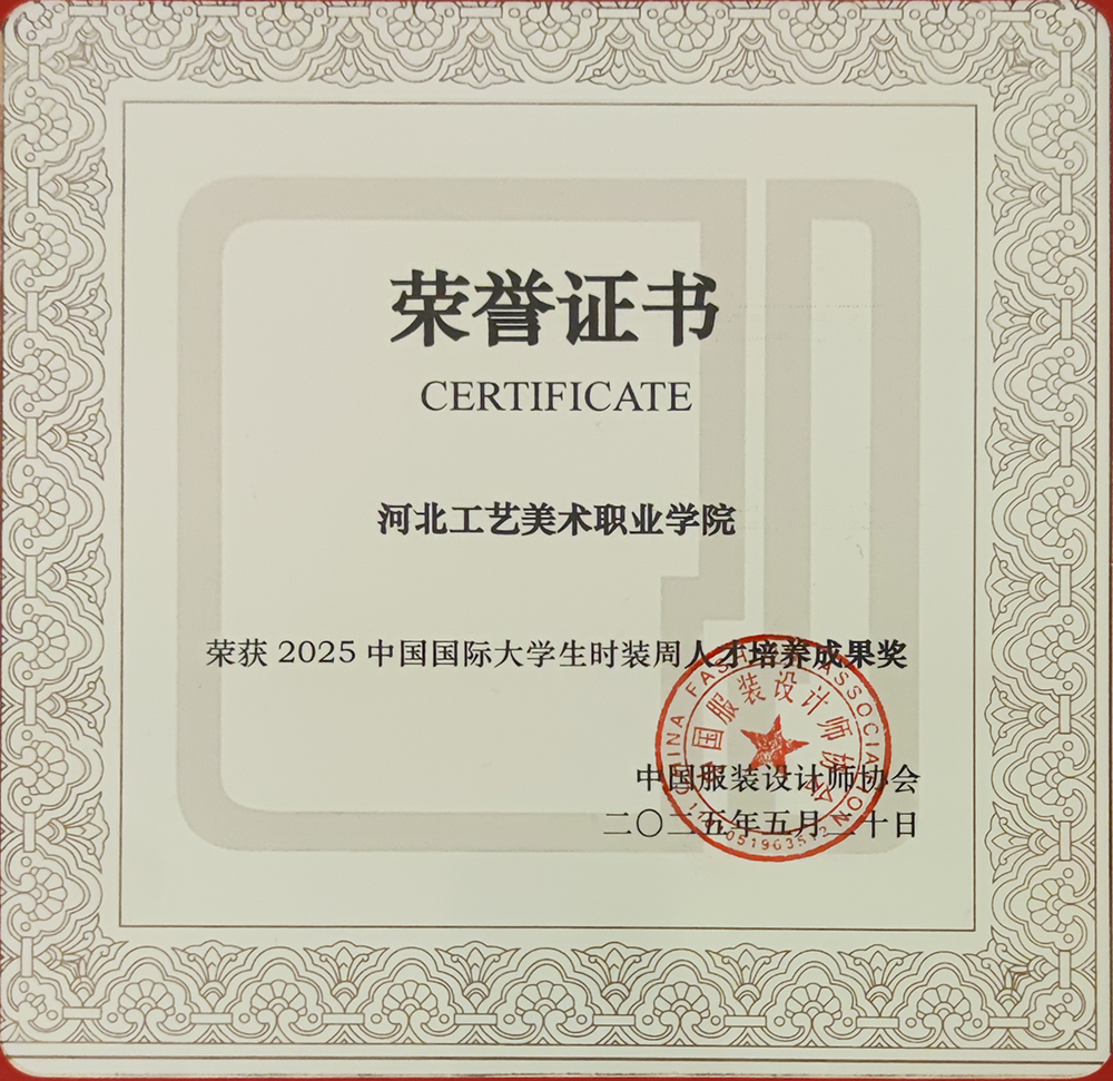 「中国国际大学生时装周」(创办于2013年,由中国服装设计师协会主办)作为国内高校时尚教育领域最具国际影响力的展示平台,每年仅遴选70余所专业院校参展。2025年,我校时尚工艺系成功入选参展行列,标志着该系专业建设水平迈入全新发展阶段。其服装与服饰设计、人物形象设计两大专业作品通过CCTV央视频向全球同步直播发布,并最终斩获人才培养成果奖等三项行业权威认证。