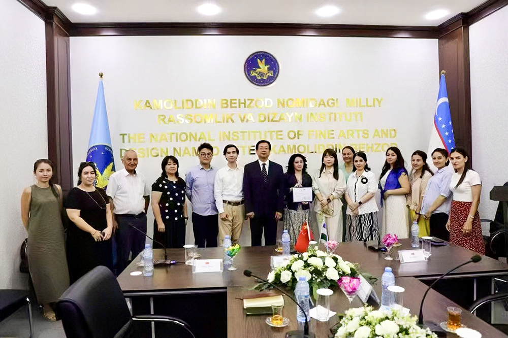 在全球化的大背景下,我校积极响应国家对外开放政策,贯彻职业教育“走出去”战略,致力于推动工艺美术和艺术设计类职业教育国际化与数智化的普及与发展。我校依托自身在传统工艺美术领域中所建立的教学科研优势,借助“全国数智艺术与设计创意行业产教融合共同体”的平台优势,开展学术交流与专业指导,应乌兹别克斯坦民族美术与设计学院和哈萨克大学邀请,我校校长张广军率领代表团于6月22日至6月29日赴乌兹别克斯坦与哈萨克斯坦进行了为期一周的交流访问。学校教务处处长任慧,国际合作科副科长王东随团出访。