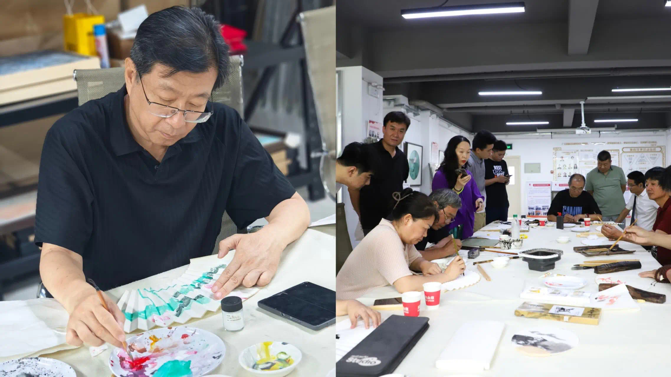 为深入学习贯彻习近平总书记关于文化工作的重要论述,7月11日,我校联合民盟保定市委、民盟保定美术院,在“盟员之家”(民盟保定美术院创作基地)共同举办文化艺术“盟”讲堂——扇面绘画艺术讲座与体验活动,以艺术实践赋能文化自信建设。