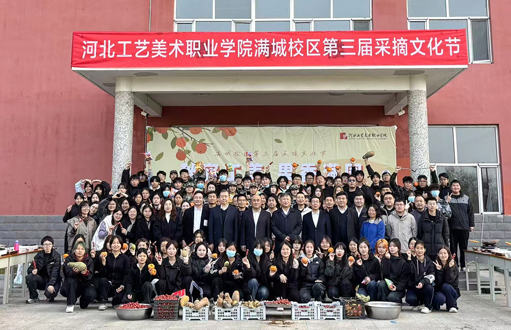 11月1日,河北工艺美术职业学院在满城校区举办了以“秋实工美,果香满园”为主题的第三届采摘文化节。学校党委书记孙斌,党委副书记赵云耕,纪委书记王立新,党委委员、副校长卫进东出席活动,各系、部师生代表参加活动。
