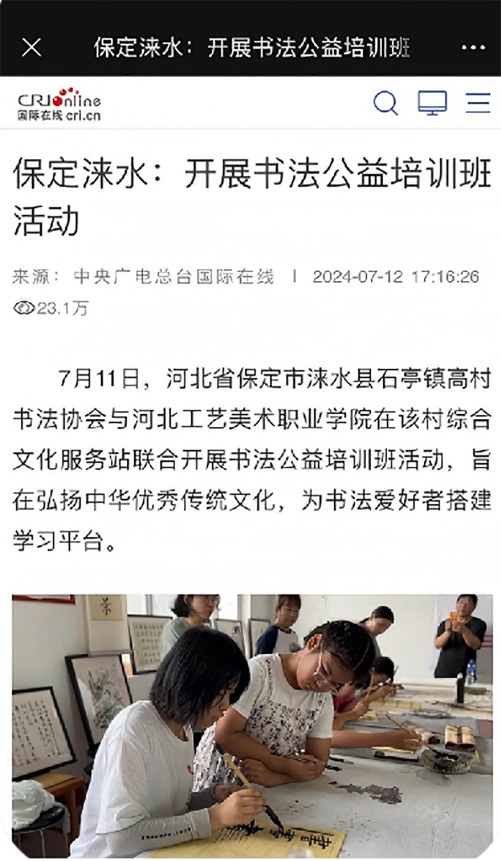 支部以“非遗体验、艺术创作、志愿服务、文化传播”四个维度为载体,联合地方非遗传承人,引入渤海渔村剪纸等富含红色基因与传统文化底蕴的项目,引导学生在技艺传承中触摸文化根脉。围绕“乡村振兴”等时代主题,确立“思政主题+非遗形式”创作导向,牵头成立“翰墨丹青志愿服务队”,与保定儿童福利院、涞水县乡村学校等建立长期合作,常态化开展社区墙绘、老年书画公益培训等活动,并通过“线下展览+线上推广+媒体联动”矩阵推动成果辐射校园内外。