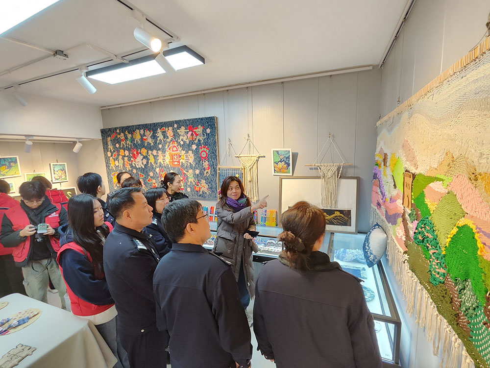 活动期间,李雪军一行还参观了艺术实践中心内的各类非遗工作室、创新创业中心及美术系师生作品展,详细了解了我校在专业建设与校园文化建设方面取得的成果。