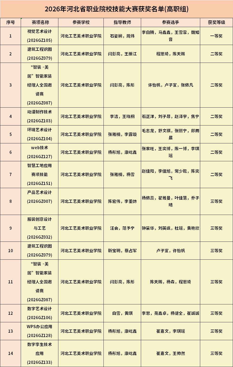 喜报 | 我院师生在2026年河北省职业院校技能大赛中斩获17项大奖