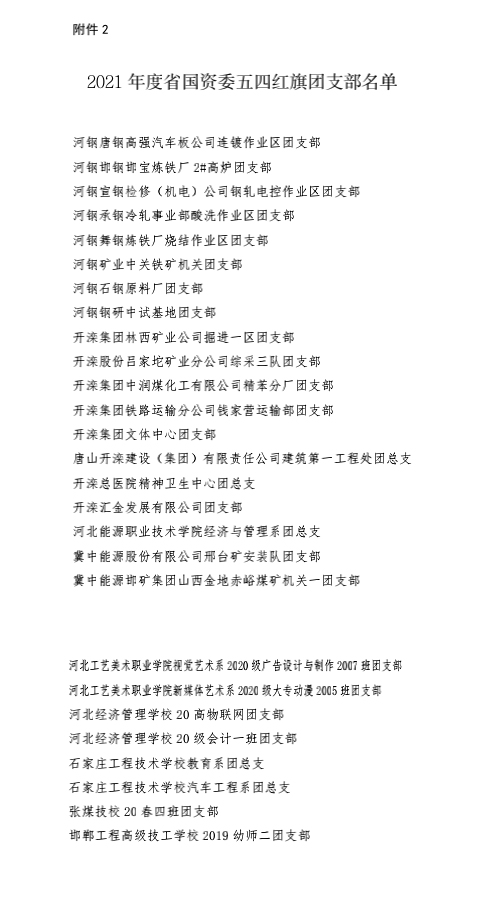近日,共青团河北省国资委团委印发了《关于2021 年度省国资委系统共青团和青年工作先进集体和先进个人的表彰决定》,我院荣获2021年度省国资委五四红旗团支部、2021年度省国资委优秀共青团员等多项集体和个人荣誉称号。