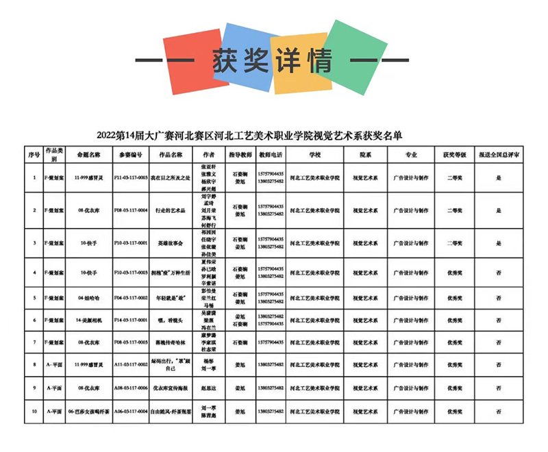 喜报:我院视觉艺术系在2022年第十四届全国大学生广告艺术大赛(河北赛区)中喜获佳绩!