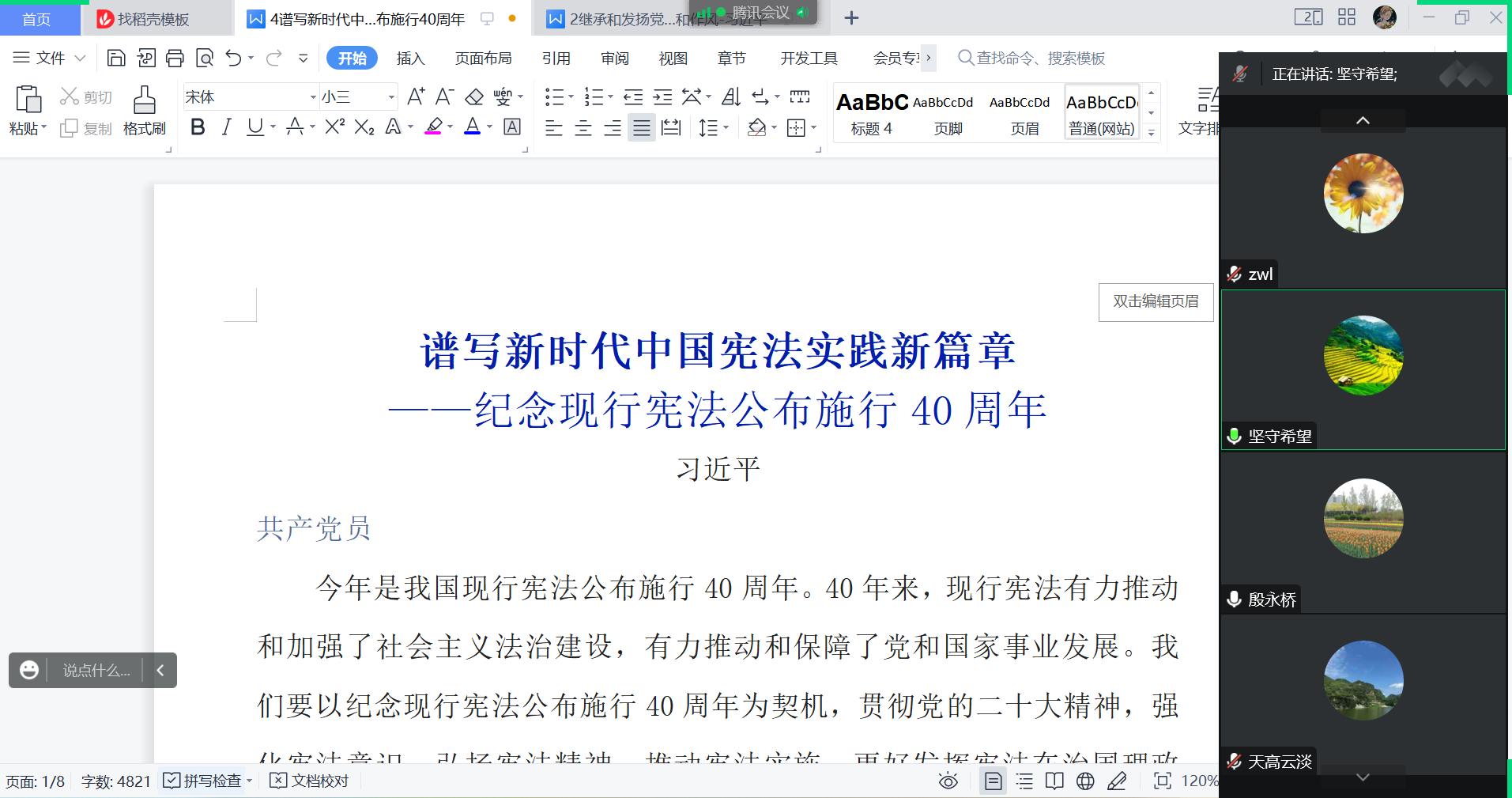 12月31日,学院党委理论学习中心组以腾讯会议形式组织专题学习会,集中学习习近平在中共中央政治局召开民主生活会上的重要讲话、瞻仰延安革命纪念地的重要讲话和纪念现行宪法公布施行40周年署名文章。学院领导班子成员,有关中层部门负责人参会。学院党委书记殷永桥主持会议并讲话。