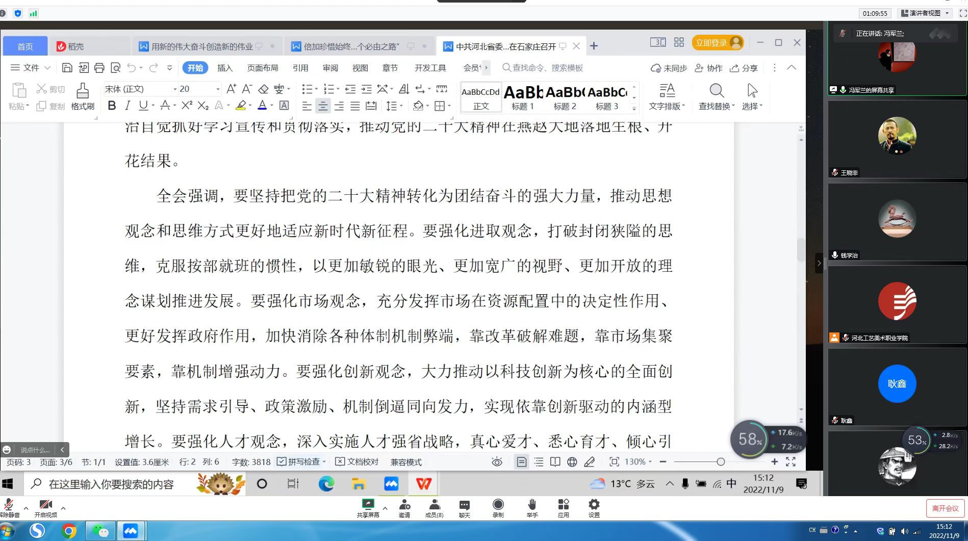 11月9日,学院党委理论学习中心组会议在二楼会议室和腾讯会议线上线下同步召开,集中学习中共中央关于认真学习宣传贯彻党的二十大精神的决定、中国共产党河北省第十届委员会第三次全体会议精神。学院领导班子成员,有关中层部门负责人参会。学院党委书记殷永桥主持会议并讲话。