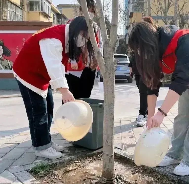 在植树活动现场,美术系青年志愿者们身穿红色马甲,有的手拿铁锹,有的提浇水壶,迅速投入到植树行动中。此次活动的开展,表现出青年志愿者的青春风采,营造出服务社区、奉献社会的良好氛围,让大家都成为生态环境的守护者和实践者,为建设天蓝、地绿、水清的美丽保定贡献出自己的力量!