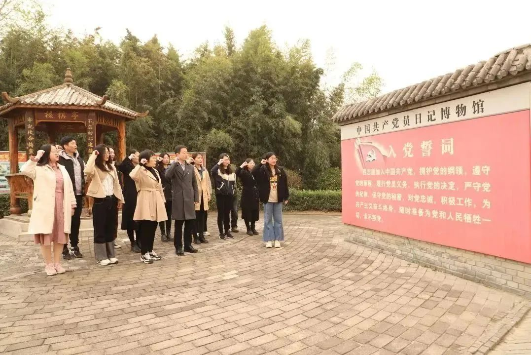 主题党日活动最后,全体党员神情庄重、精神饱满,面对鲜红的党旗,高举右拳,重温入党誓词,铿锵有力的宣誓声响彻日记博物馆。