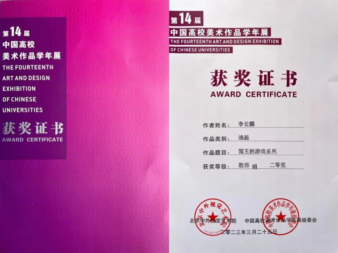 近日,第十四届中国高校美术作品学年展落下帷幕。我院美术系教师李云鹏油画作品《国王的游戏系列》荣获“教师组二等奖”。