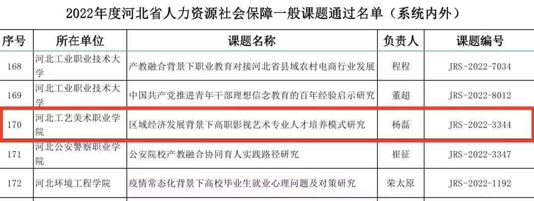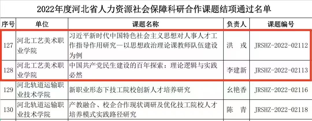 根据河北省人社厅发布的《关于公布2022年度河北省人力资源和社会保障研究课题结项评审结果的通知》,我院确定结项项目3项,现公示如下: