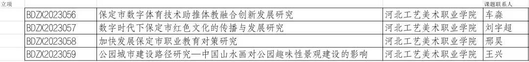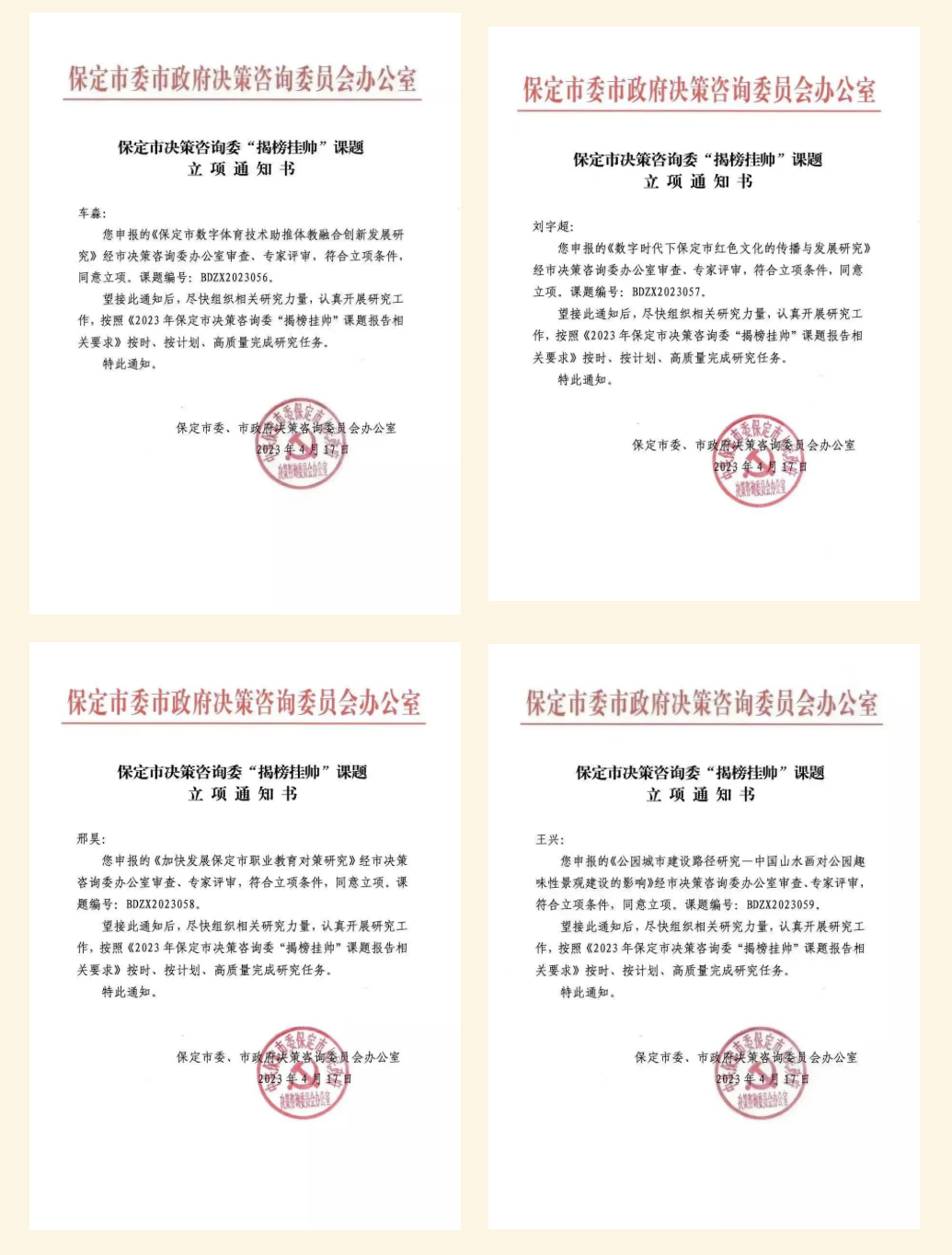 根据保定市委、市政府决策咨询委员会办公室印发的立项通知,我院共申报课题5项,其中立项课题4项,未立项课题1项。现将立项名单予以公布。